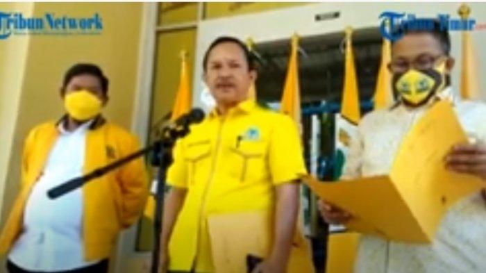 Seusai rapat atau sekira pukul 14.30 wita, ketiganya menggelar jumpa pers di depan pintu utama kantor Golkar.