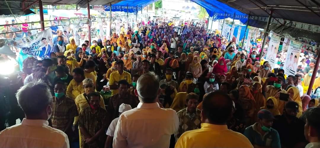 TRIBUNLUTIM.COM, MALILI - Pasangan Irwan Bachri Syam dan Andi Muhammad Rio Patiwiri Hatta (IBAS-RIO) silaturrahmi di Mahalona Raya, Kecamatan Towuti, Luwu Timur, Sulawesi Selatan, Rabu (26/8/2020).