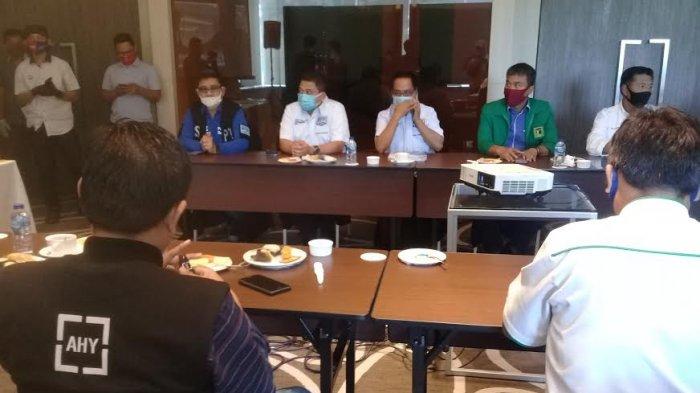 TRIBUN-TIMUR.COM, MAKASSAR - Calon Walikota dan Wakil Walikota Makassar Munafri Arifuddin-Abdul Rahman Bando bertemu dengan sejumlah pengurus partai di lantai 2 Hotel Novotel, Jl Chairil Anwar, Makassar, Sabtu (5/9/2020) siang.