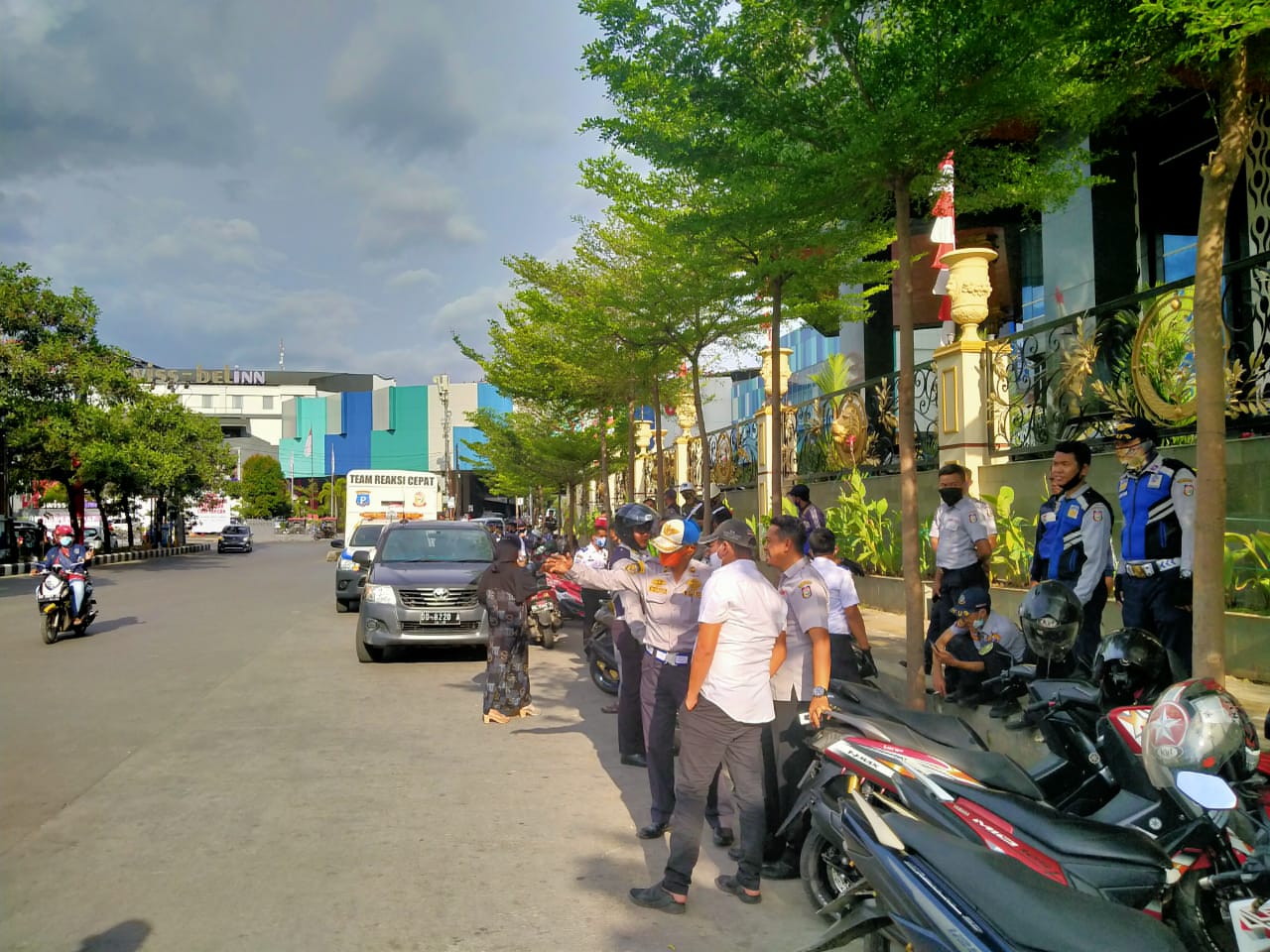 Sebanyak 12 personel yang tergabung dalam Tim Reaksi Cepat (TRC) PD Parkir berpatroli sembari bersosialisasi melalui mobil komando yang dipimpin Direktur Operasional Susaman Halim.