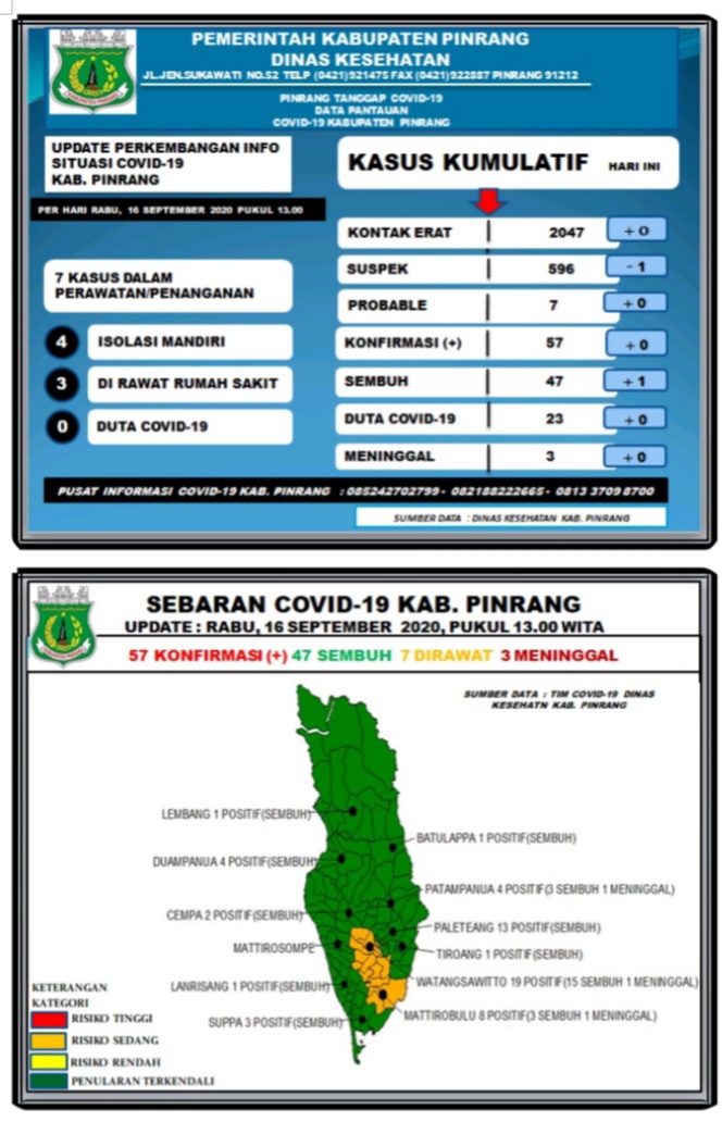 Saat ini, pasien terkonfirmasi positif di Pinrang berjumlah 57 orang.