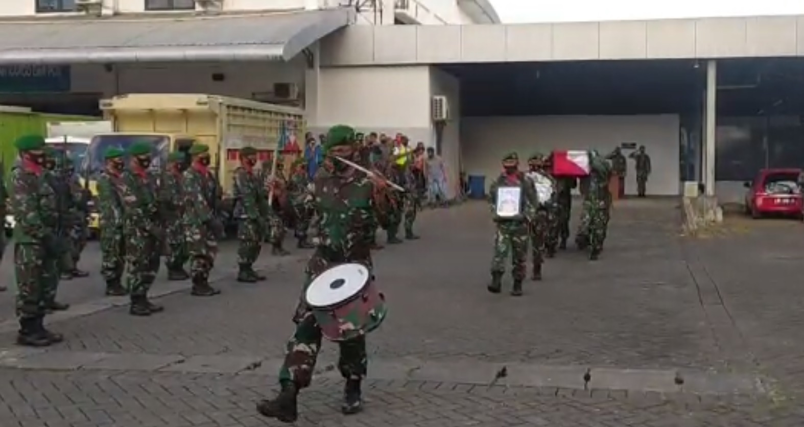 Jenazah personil Kodim 1404/Pinrang, Alm Serka Sahlan, telah tiba Makassar, ibukota Provinsi Sulawesi Selatan, Jumat (18/9/2020) pukul 15.30 Wita.