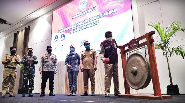 TRIBUN-TIMUR.COM, MAKASSAR - Gubernur Sulawesi Selatan (Sulsel), Prof HM Nurdin Abdullah, membuka acara Rapat Koordinasi Kesiapan Pilkada 2020 di Hotel Claro Makassar, Senin, (21/9/2020).