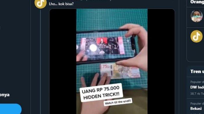 TRIBUN-TIMUR.COM - Sebuah unggahan video menampilkan percobaan uang pecahan Rp 75.000 yang di-scan kemudian memunculkan video paduan suara menyanyikan lagu Indonesia Raya viral di media sosial pada Sabtu (26/9/2020).