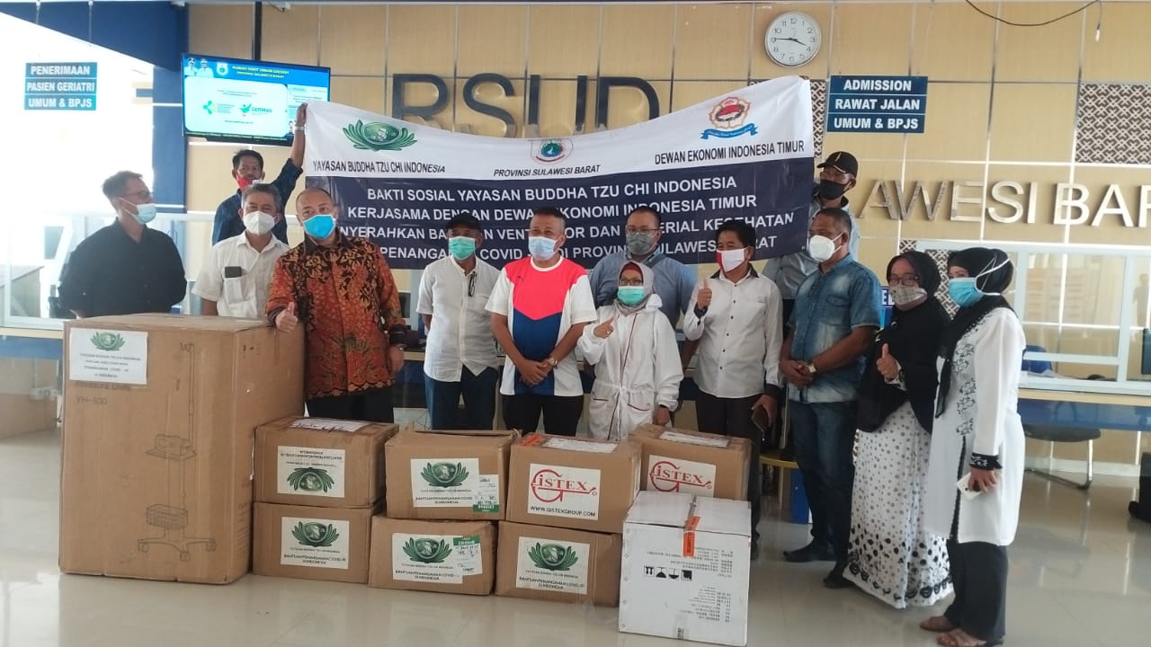 TRIBUN-TIMUR.COM, MAMUJU - Dewan Ekonomi Indonesia Timur (DEIT) bekerjasama dengan Yayasan Buddha Tzu Chi Indonesia salurkan bantuan Alat Kesehatan (Alkes) berupa Alat Pelindung Diri (APD) dan obat-obatan herbal untuk penaganan pasien Covid-19 di RSUD Regional Sulbar, Rabu (30/9/2020).