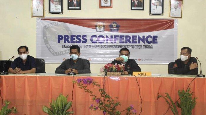 Konferensi pers turut dihadiri Ketua KPU Toraja Utara, Bonnie Freedom dan dua Anggota KPU, Roy Pole Pasalli serta Anshar Tangkesalu.