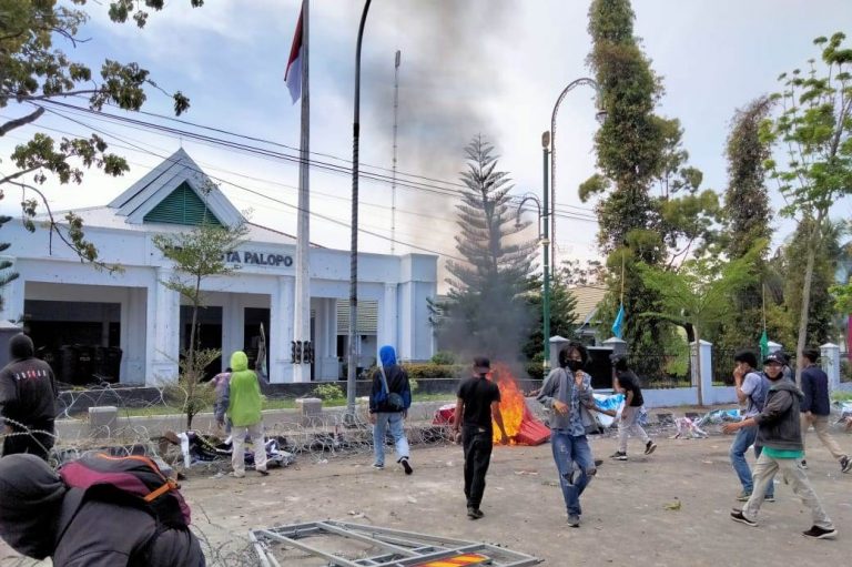 Demo mahasiswa menolak pengesahan Omnibus Law Rancangan Undang-undang (RUU) Cipta Kerja menjadi UU di DPRD Palopo berlangsung ricuh.