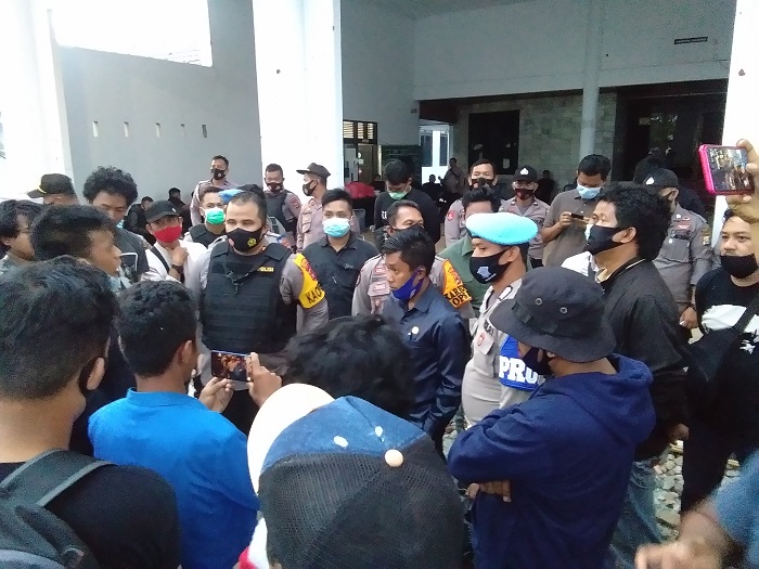 TRIBUNPALOPO.COM, WARA - Sebagian besar anggota DPRD Palopo tengah perjalanan dinas luar daerah saat ratusan mahasiswa demo menolak pengesahan Omnibus Law Rancangan Undang-undang (RUU) Cipta Kerja menjadi UU, Kamis (8/10/2020).