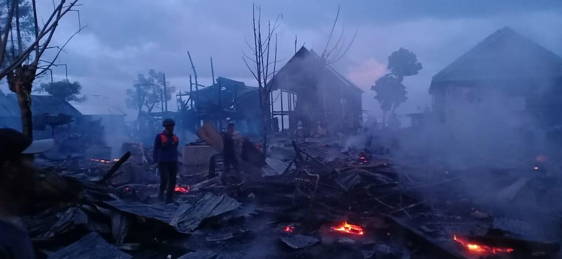 Kebakaran tersebut mengakibat 5 rumah panggung hangus terbakar serta rata dengan tanah.