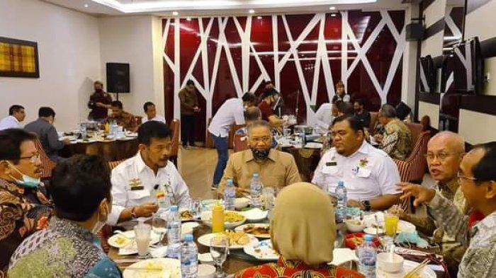 Saat jamuan makan siang di Restoran Sunachi Hotel Claro Makassar, hadir juga para dosen Universitas Hasanuddin dari Fakultas Hukum.