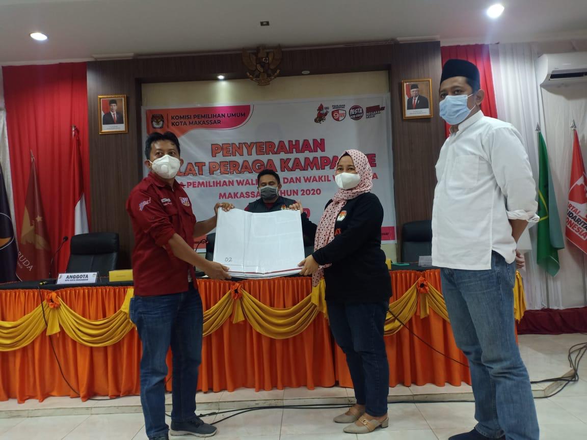 Penyerahan baliho kepada pasangan calon disaksikan Ketua KPU Makassar M Farid Wajdi.