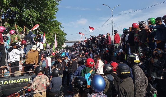 Massa Aksi Tolak Omnibus Law Padati DPRD Sulsel di Hari Sumpah Pemuda, Jl Urip Sumoharjo Macet