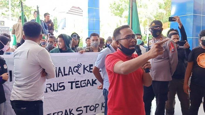 Himpunam Mahasiswa Islam (HMI) Cabang Manakarra unjuk rasa di kantor Kemenkumham Sulawesi Barat, Kamis (5/11/2020).