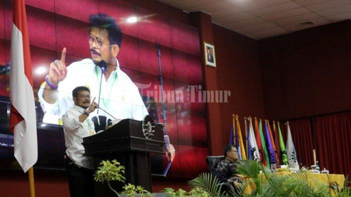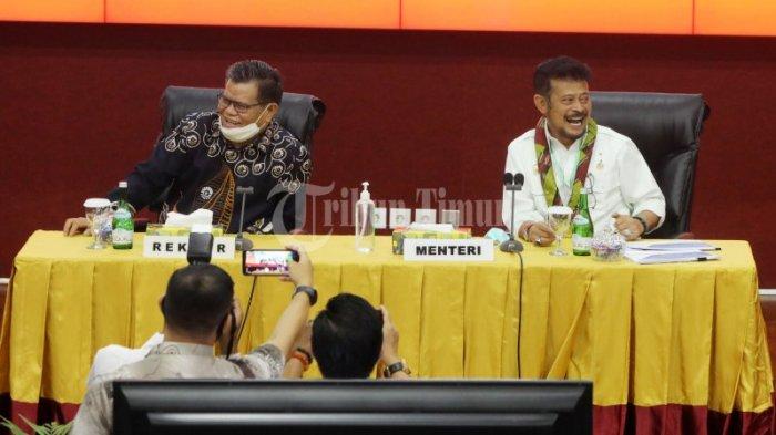 TRIBUN-TIMUR.COM, MAKASSAR - Menteri Pertanian RI, Syahrul Yasin Limpo membawakan kuliah umum di Ruang Teater Gedung Pinisi UNM Lantai 3, Jl AP Pettarani, Makassar, Sabtu (14/11/2020).