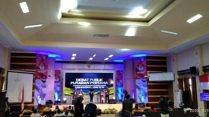 TRIBUN-TIMUR.COM, MAJENE - Debat terbuka pasangan calon Bupati dan Wakil Bupati Majene di Gedung Lembaga Penjaminan Mutu Pendidikan (LPMP) Provinsi Sulawesi Barat, Jl Majene Mamuju KM 5 Rangas, Sabtu (14/11/2020).