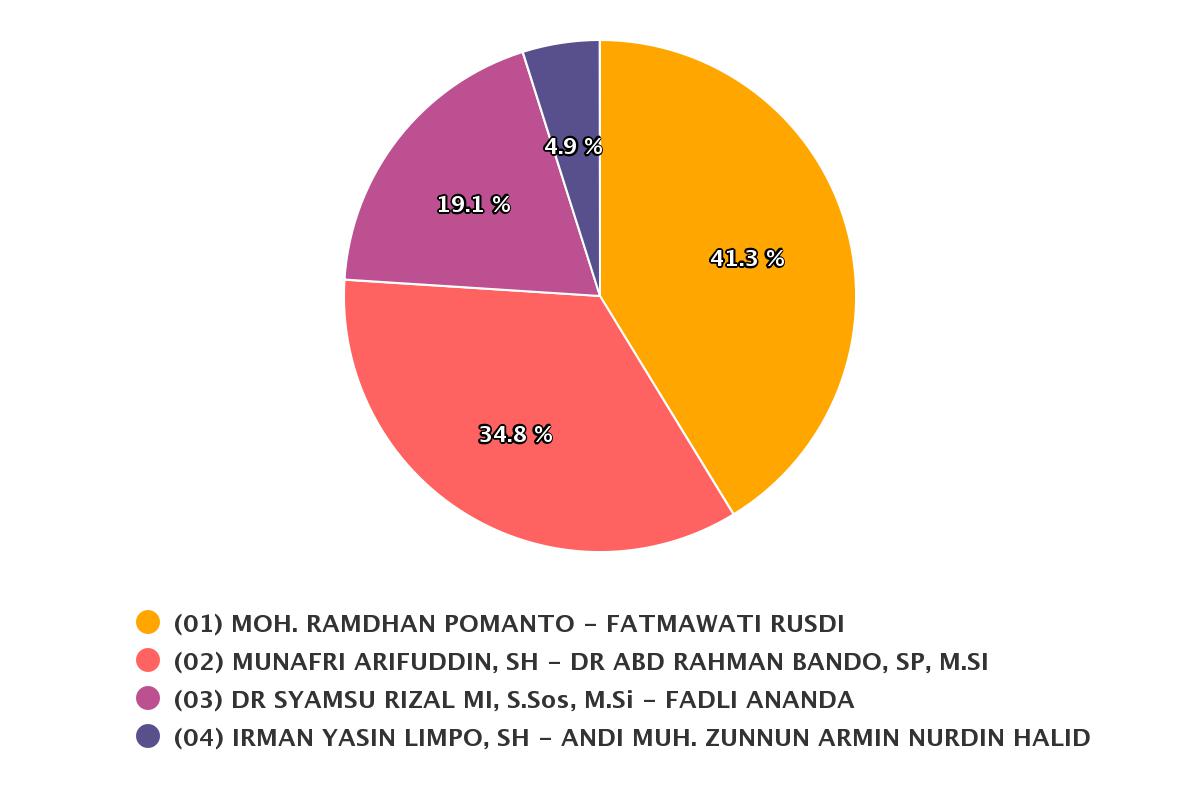 Sementara pasangan Appi-Rahman meraih 34,8 persen. Deng Ical - Fadli Ananda 19,1 persen dan IMUN 4,9 persen.