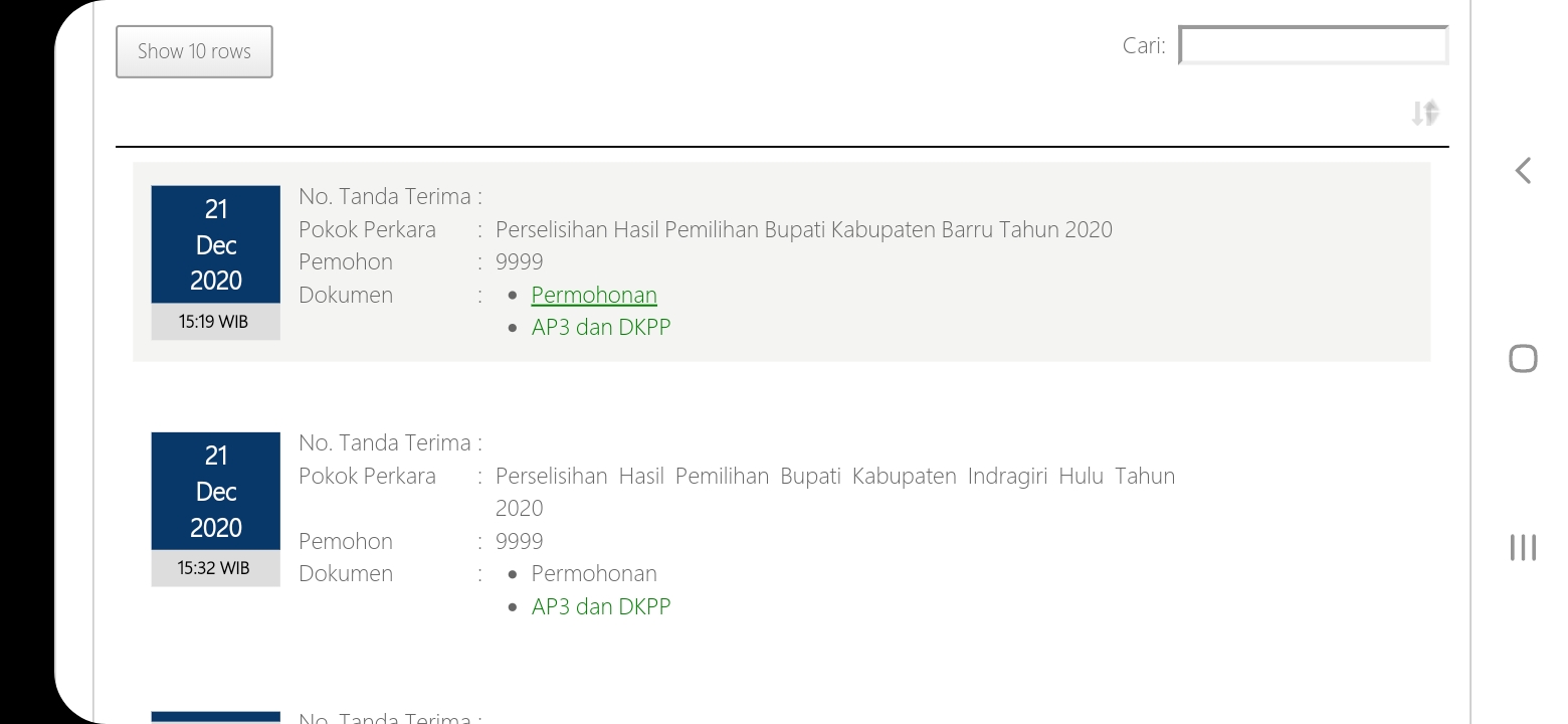 Terlihat kuasa hukum Muh Ikbal dkk, dimana pengajuan permohonan dilayangkan Senin (21/12/2020) pukul 14.13 Wib, yang diteken oleh panitera Muhidin SH MHum pukul 16.24 Wib.