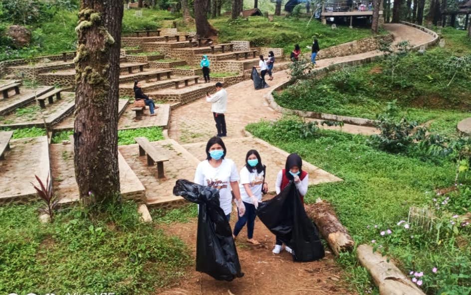 TRIBUNTORAJA.COM,MAKALE--Puluhan pendukung pasangan Theo-Zadrak melakukan aksi bersih-bersih di obyek wisata Pango-Pango, Minggu (27/12/2020).