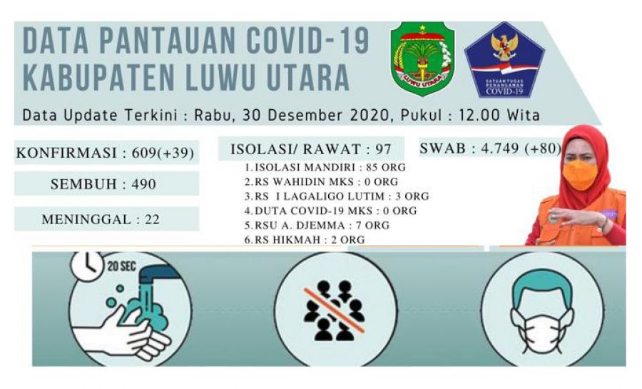 TRIBUNLUTRA.COM, MASAMBA - Satuan Tugas (Satgas) Penanganan Covid-19 Kabupaten Luwu Utara kembali merilis data terbaru kasus harian konfirmasi positif Covid-19, Rabu (30/12/2020).