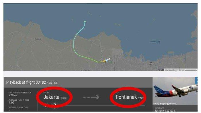 Pesawat Sriwijaya Air yang hilang kontak tersebut akan melakukan perjalanan dari Jakarta menuju Pontianak.