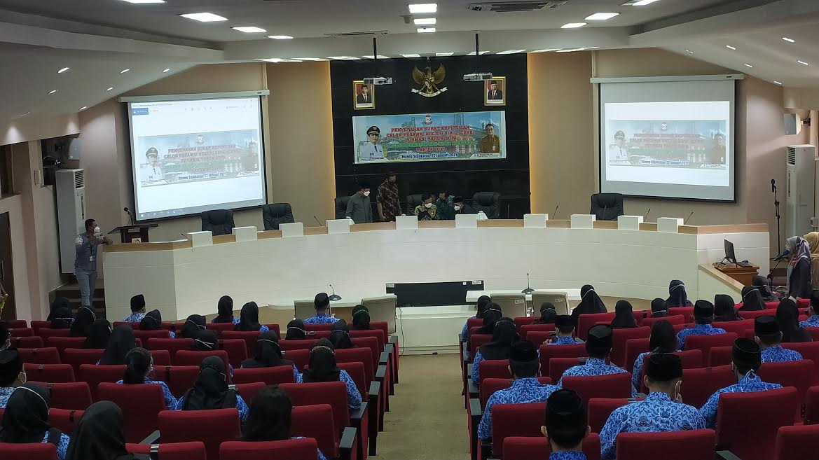 TRIBUN-TIMUR.COM, MAKASSAR - Pj Walikota Makassar, Prof Rudy Djamaluddin menyerahkan Surat Keputusan (SK) kepada 526 Calon Pegawai Negeri Sipil (CPNS) di lingkup Kota Makassar di ruang Sipakatau Lantai 2, Balaikota Makassar, Jumat (22/1/2021).