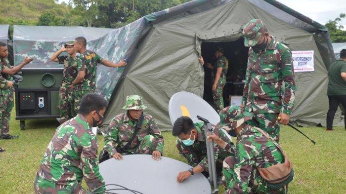 Rumah sakit Lapangan milik TNI-AD di Lapangan Tammajarra, Korem 142 Tatag, Mamuju, Sulbar, dilengkapi alat komunikasi mobile (Komob)
