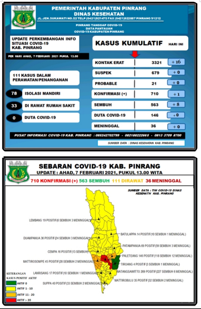 TRIBUNPINRANG.COM, WATANG SAWITTO - Dinas Kesehatan Kabupaten Pinrang menyampaikan perkembangan terbaru kasus Covid-19, Minggu,(07/02/2021).