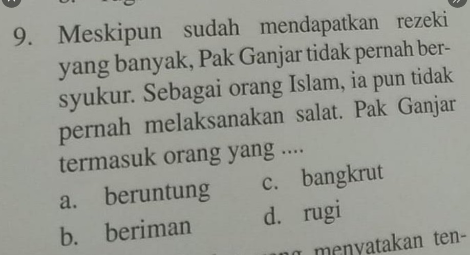 Pasalnya, soal terkait agama ini membahas seorang tokoh bernama Pak Ganjar.