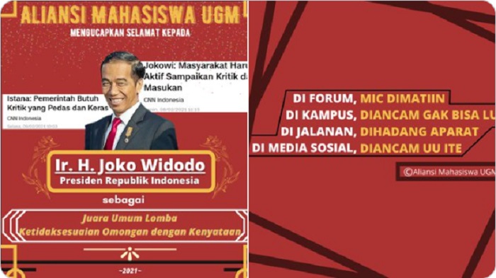 Artikel ini telah tayang di Wartakotalive dengan judul Aliansi Mahasiswa UGM Nobatkan Jokowi Juara Umum Lomba Ketidaksesuaian Omongan dengan Kenyataan,