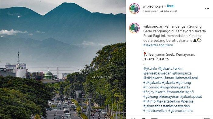 "Pemandangan Gunung Gede Pangrango di Kemayoran Jakarta Pusat Pagi ini, menandakan Kualitas udara sedang bersih Jakartans (emoji) #JakartaLangitBiru