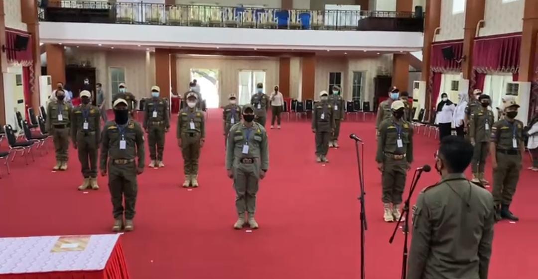 TRIBUN-TIMUR.COM, MAKASSAR - Personel Satuan Polisi Pamong Praja (Satpol PP) Provinsi Sulawesi Selatan (Sulsel) menjadi simulator rangkaian prosesi pelantikan 11 kepala daerah se Sulsel, Rabu (24/2/2021) di Rumah Jabatan Gubernur Sulsel.