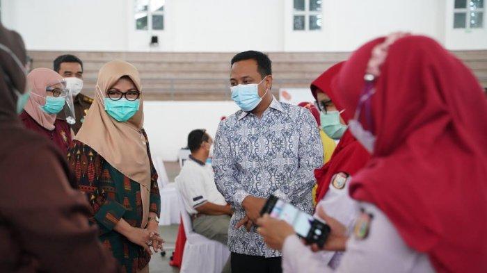 Pelaksanaan vaksinasi massal berlangsung di Gelanggang Olah Raga (GOR) JK Arenatorium, Kamis (4/3/2021).
