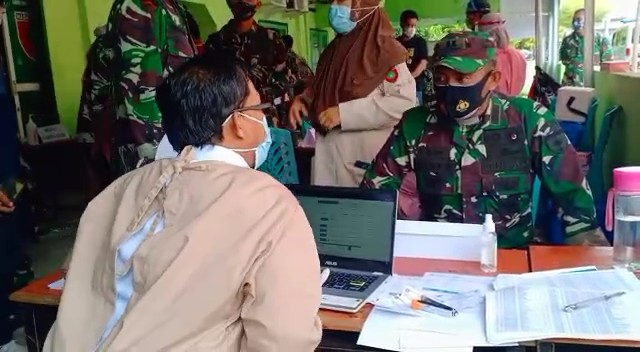 Mereka tanpa antusias saat proses vaksinasi di Rumkitban. Selama proses vaksinasi tetap menerapkan protokol kesehatan