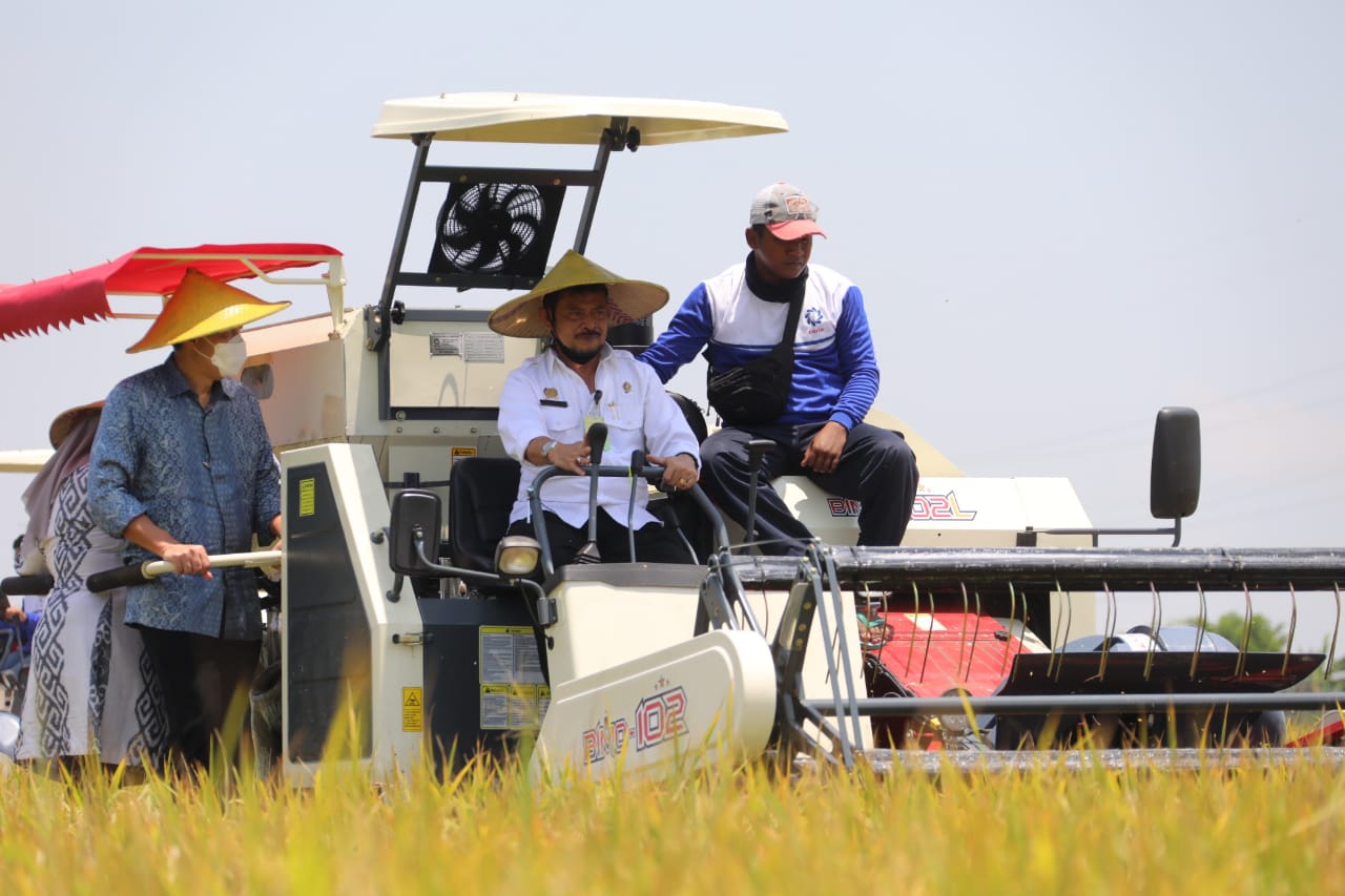 Tiga Menteri RI kompak lakukan panen raya padi di Kabupaten Gresik, yakni Menteri Pertanian (Mentan) Syahrul Yasin Limpo, Menteri Perdagangan (Mendag)