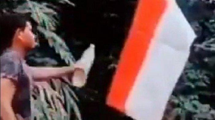 Dalam video durasi lebih 2 menit, tampak seorang pria menginjak-injak Bendera Merah putih dan membakarnya.