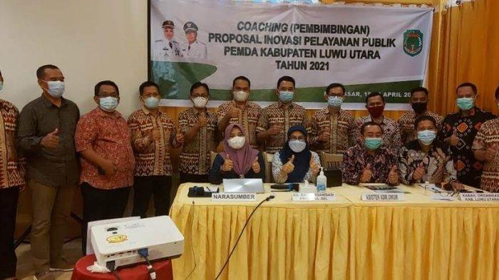 Guna mematangkan persiapan, Pemda Luwu Utara melalui Bagian Organisasi menggelar kegiatan coaching atau pembimbingan mandiri proposal inovasi di Hotel Grandtown, Makassar.