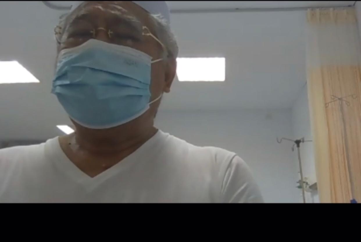 Saat menyampaikan dukanya, dari video aplikasi Zoom, Sattar terlihat duduk di ranjang rumah sakit.
