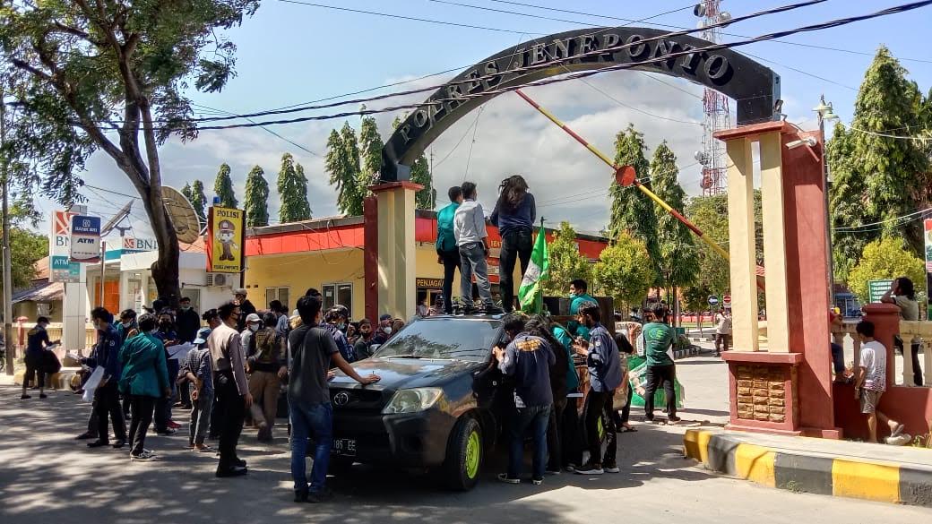 Aksi tersebut berlangsung di depan Mapolres Jeneponto, Sulawesi Selatan, Kamis (27/5/2021).