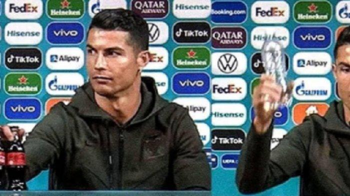 Saat jumpa pers menjelang pertandingan pembukaan Euro 2020 Portugal melawan Hungaria, penyerang itu duduk dan kemudian menggeser dua botol Coke ke pinggir.