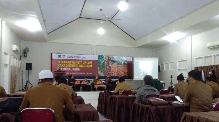 TRIBUNLUTRA.COM, MASAMBA - Lokakarya Peta Jalan Komoditas Kakao Berkelanjutan di Kabupaten Luwu Utara, Sulawesi Selatan, digelar di Aula Hotel Bukit Indah, Masamba, Selasa (6/7/2021).