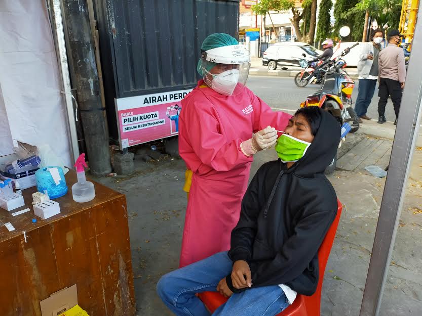 "Kita merazia warga tidak pakai masker. Sejak pagi tadi sudah sekitar 50 orang terjaring. Semua tidak pakai masker lalu kita tes rapid antigen, yang reaktif kita suruh pulang. Ini berlangsung 5 hari, ada dua reaktif hari ini," katanya.