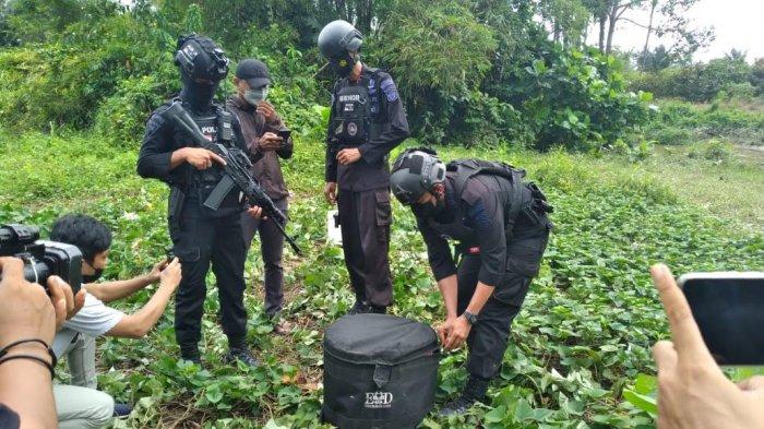 Tim Penjinak Bom Polda Sulsel meledakkan lima granat di Desa Mari-mari, Kecamatan Sabbang Selatan, Kabupaten Luwu Utara, Selasa (7/9/2021).