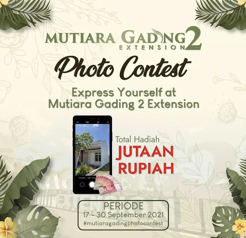 Mutiara Property menggelar Photo Contest untuk produknya Mutiara Gading 2 Extension terbuka untuk umum dengan hadiah jutaan rupiah,