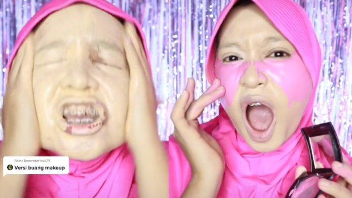 TRIBUN-TIMUR.COM - Membuat konten tak tanggung-tanggung dilakukan wanita yang suka merias wajah ini.