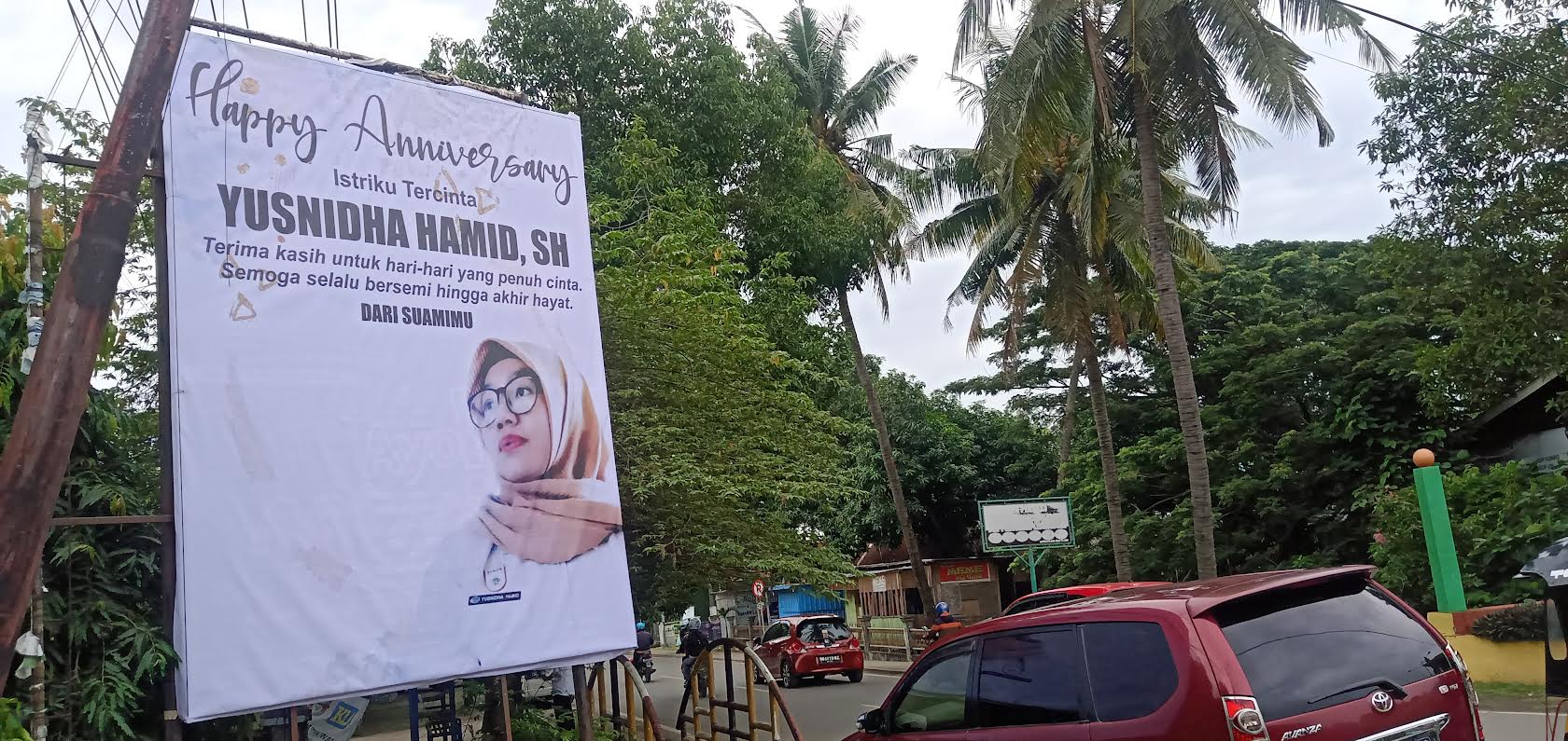 Dikonfirmasi, Andi Gusti Sam, mengaku sengaja memasang baliho tersebut untuk memperingati 12 tahun pernikahan mereka.