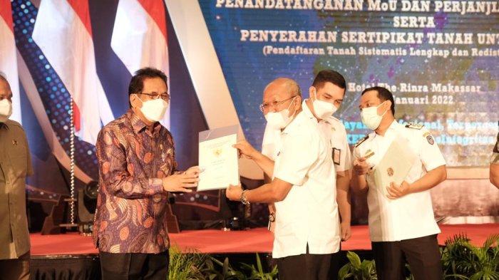 Penyerahan sertifikat ini dihadiri seluruh pemerintah daerah yang ada di Sulawesi Selatan.