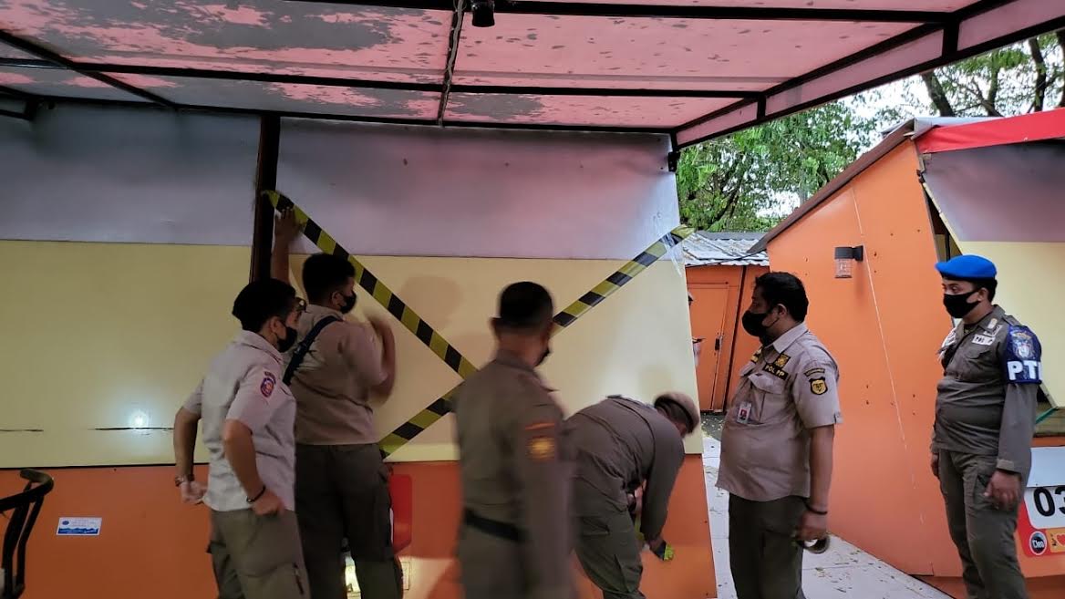 Satuan Polisi Pamong Praja (Satpol PP) Makassar, menyegel los atau kios milik pedagang di kawasan Kanrerong, Karebosi, Jl. R.A Kartini.