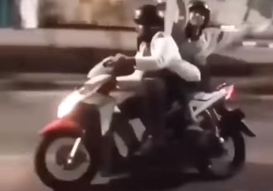 Ia mengendarai motor dengan kecepatan tinggi dengan banyak tingkah.