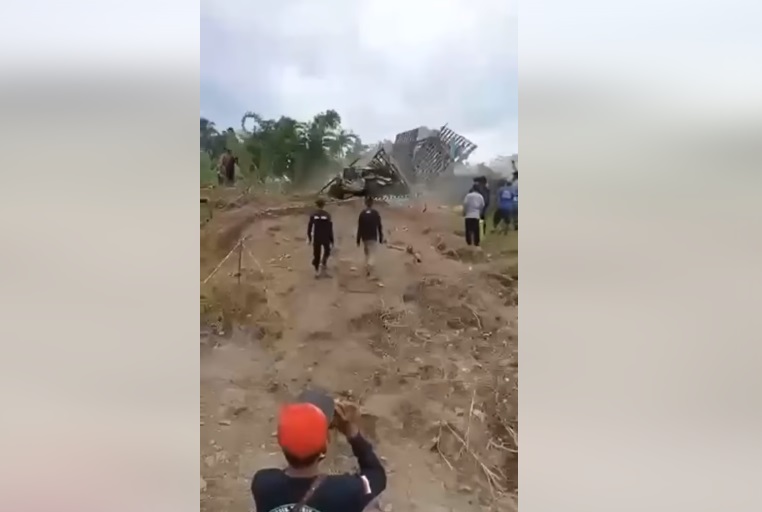 Warga yang berada di sekitar lokasi sontak histeris melihat detik-detik menegangkan kuburan hingga atap peneduhnya hancur.