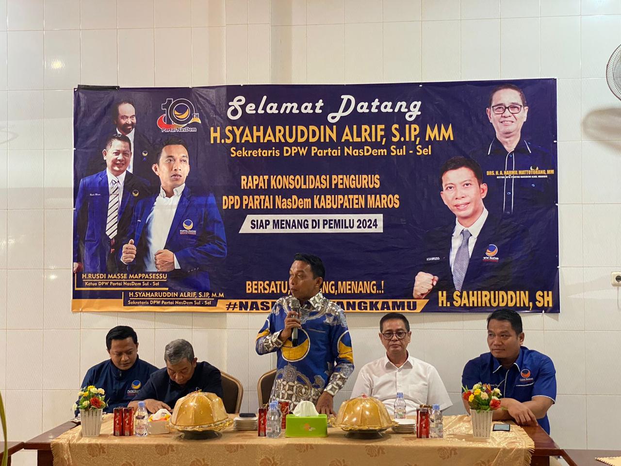 Sekretaris DPW NasDem Sulsel, Syaharuddin Alrif turun langsung memimpin rapat konsolidasi dengan kader DPD NasDem Kabupaten Maros, Sulawesi Selatan, Jumat (4/2/2022) siang.